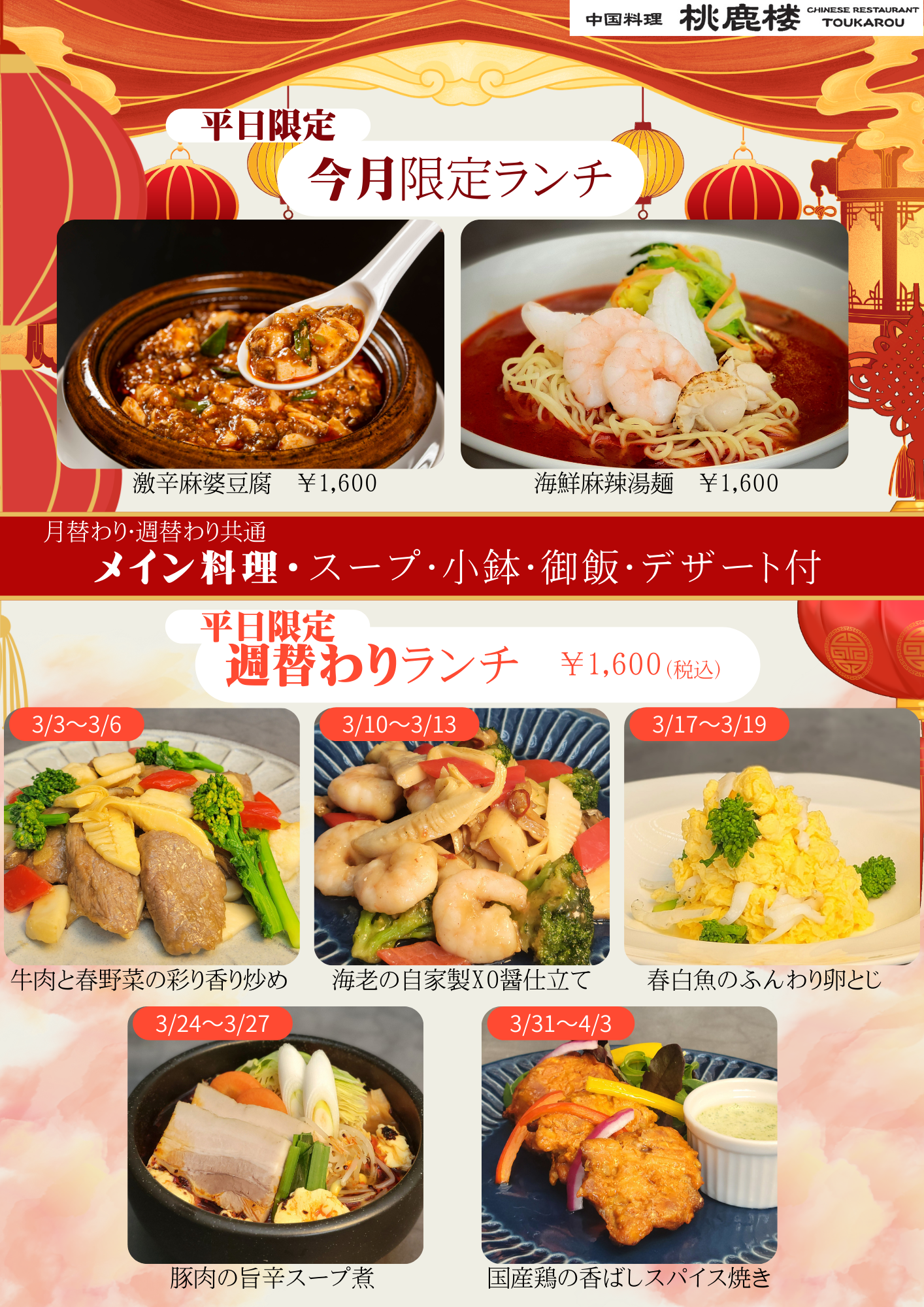 【中国料理桃鹿楼】ランチ限定メニュー