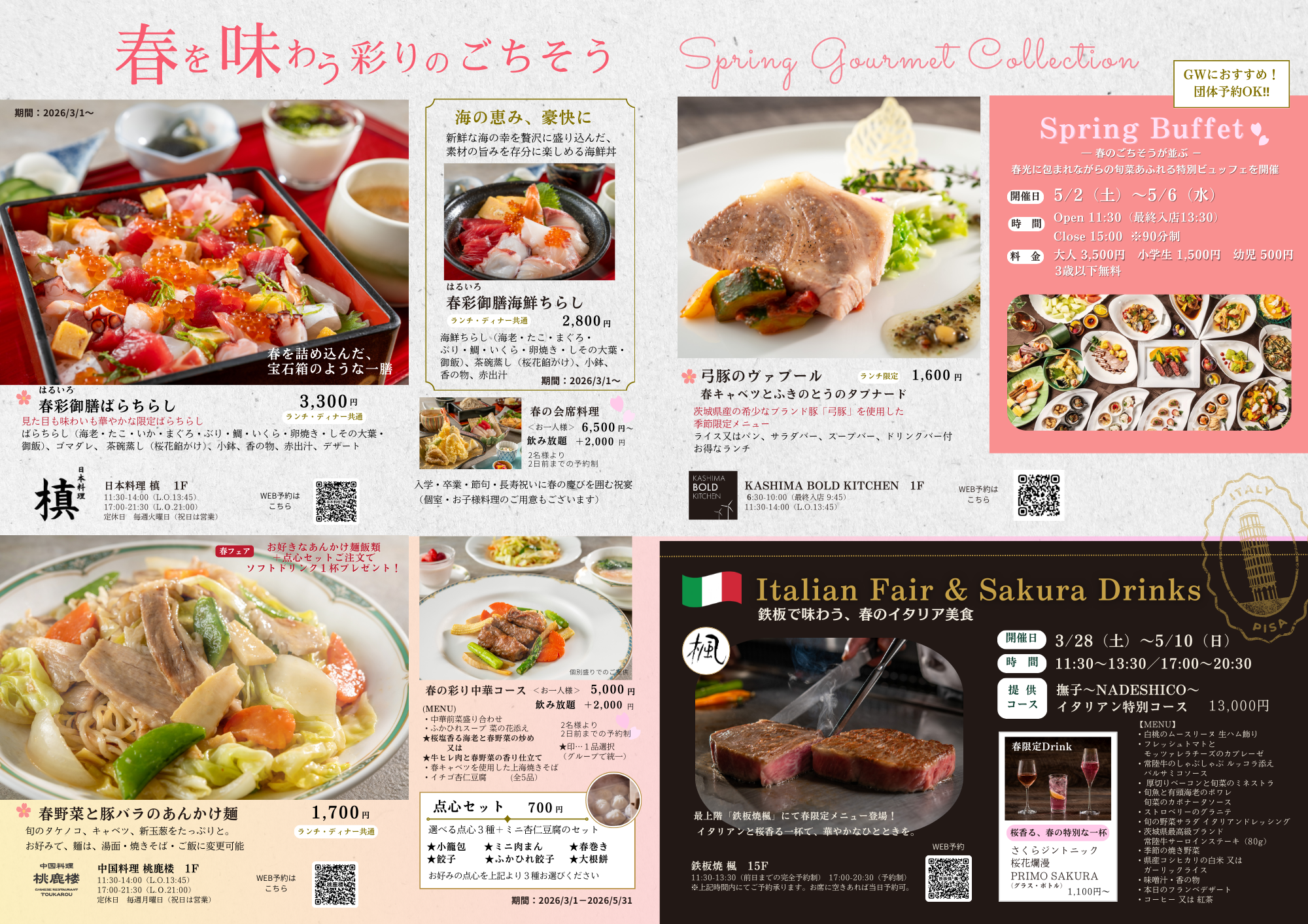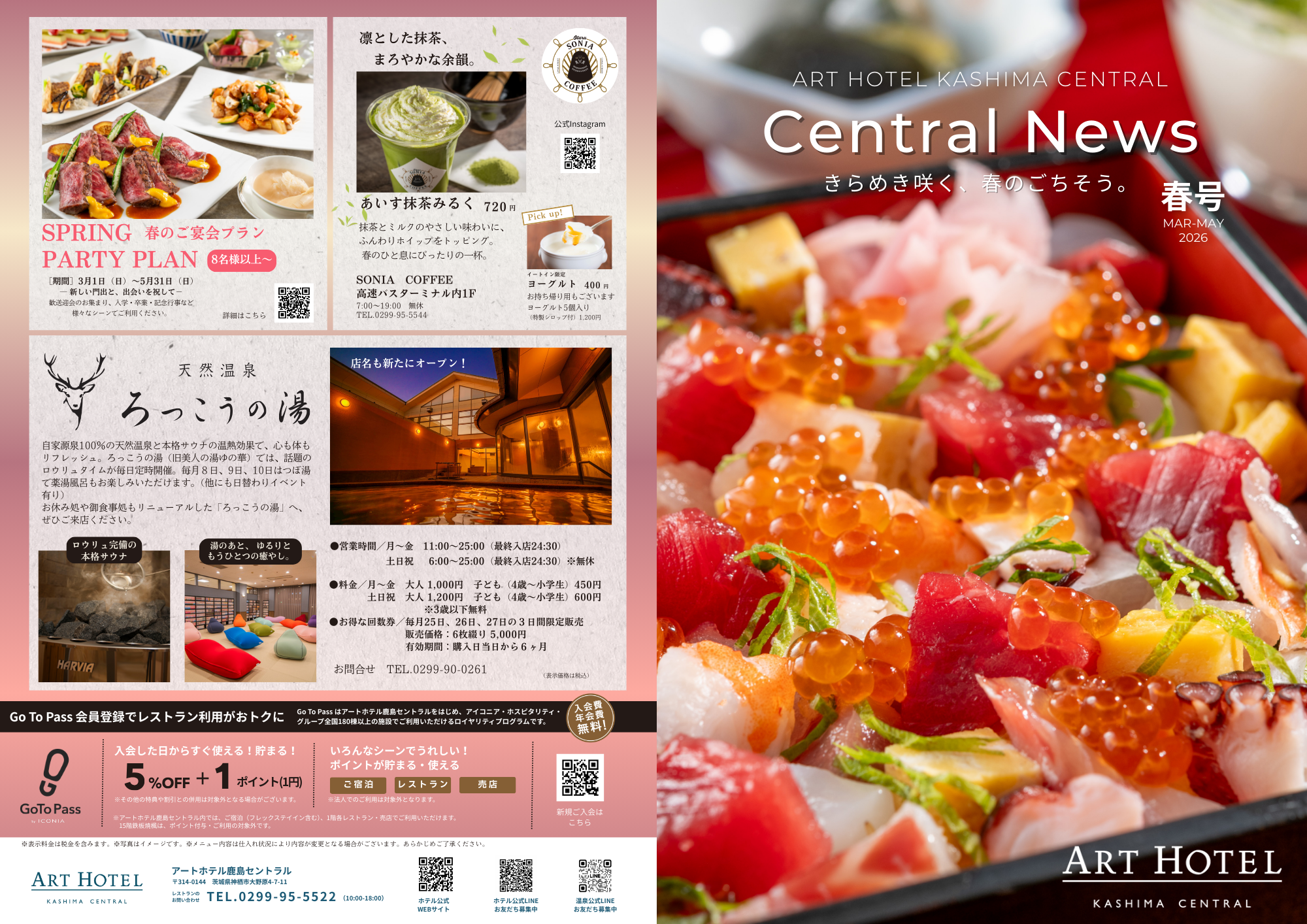 【春のCentralNews】春を味わうごちそう 公開日 2026.03.01 カテゴリー イベント 【春のCentralNews!】春を味わう彩りのごちそうが各店舗揃いました。それぞれのコンセプトやオススメメニューをお写真とともにご紹介しております。ご来館の際にはぜひお手に取ってご覧ください。 春のセントラルニュース_2026