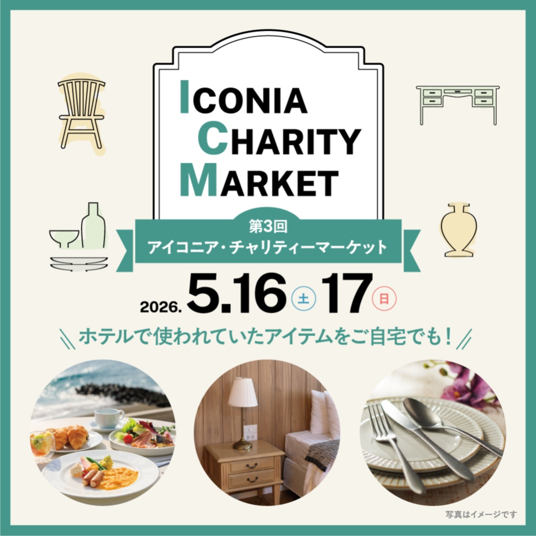 2026年5月16日(土)・17日(日)の2日間、アートホテル鹿島セントラルにて「第3回 アイコニア・チャリティーマーケット」を開催いたします。