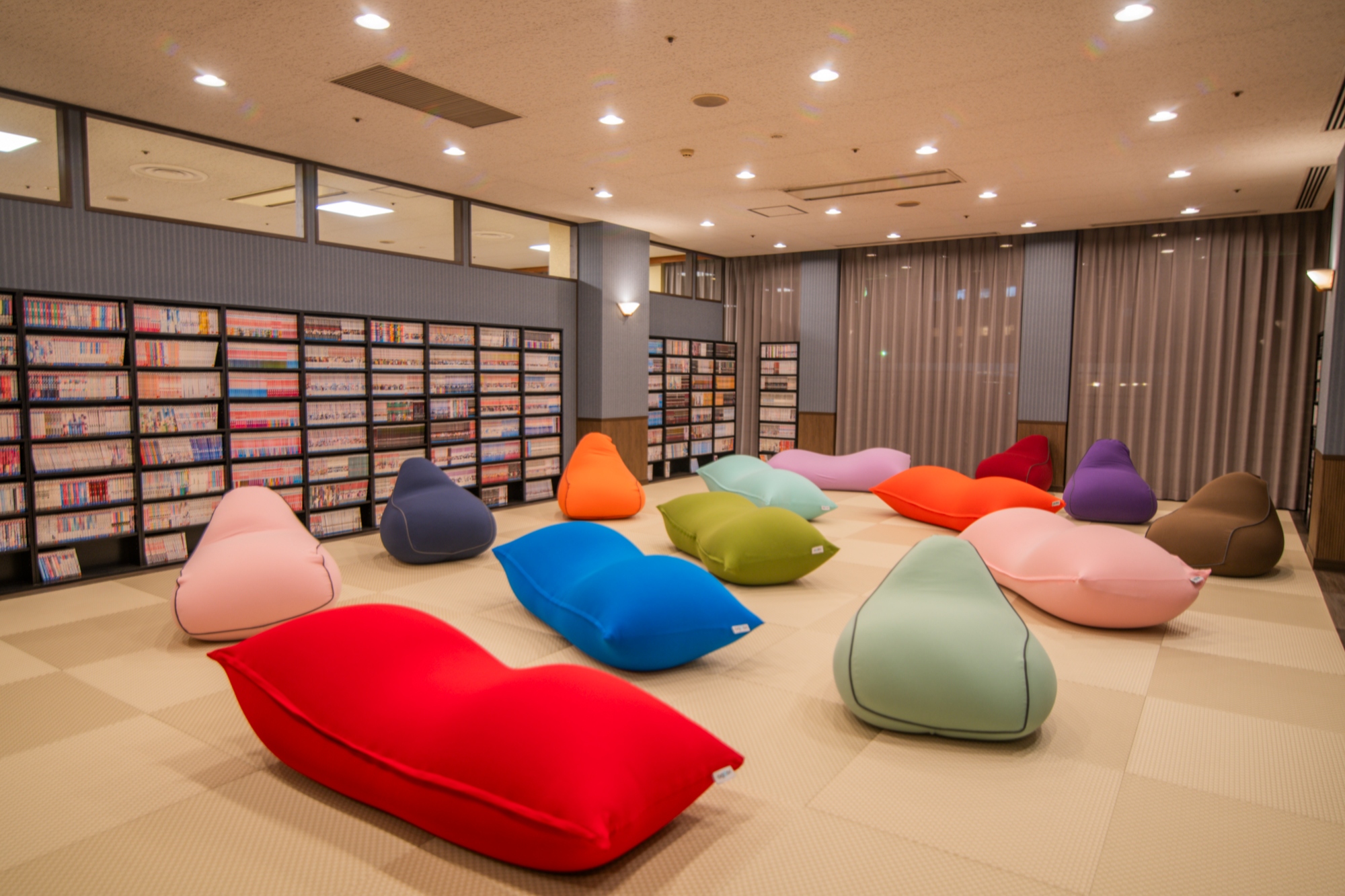 包み込まれるような座り心地の大型ビーズクッションと、思わず手に取りたくなる漫画コーナーをご用意しました。深く身体をあずけて、ゴロンとひと休み。ページをめくるたび、時間を忘れるひとときをお楽しみください。