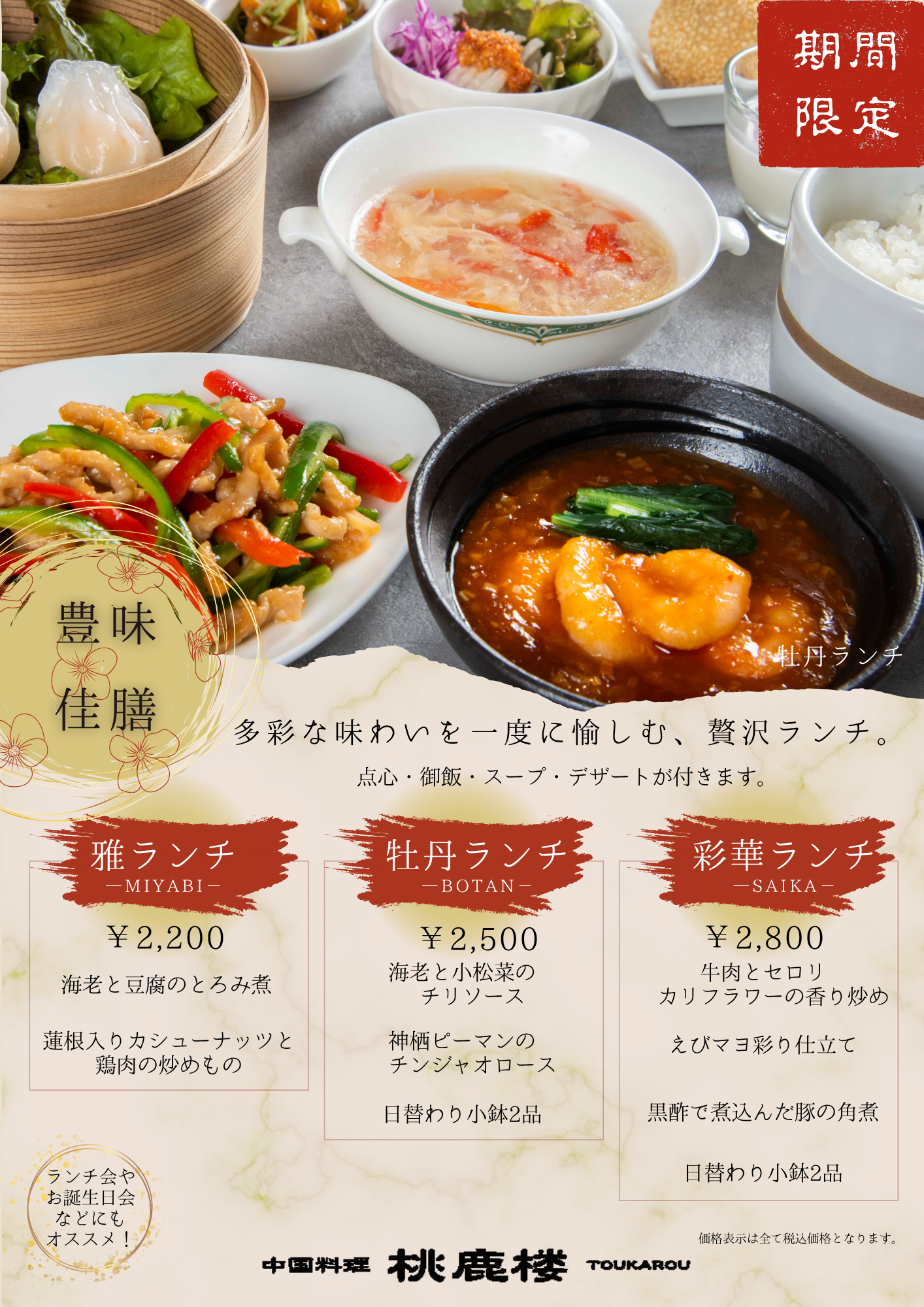 『現代の名工』にも選ばれた木村統括総料理長監修の豪華ランチが登場!選び抜かれた食材と匠の技が織りなす至高の中華コースをお気軽にお召し上がりください。