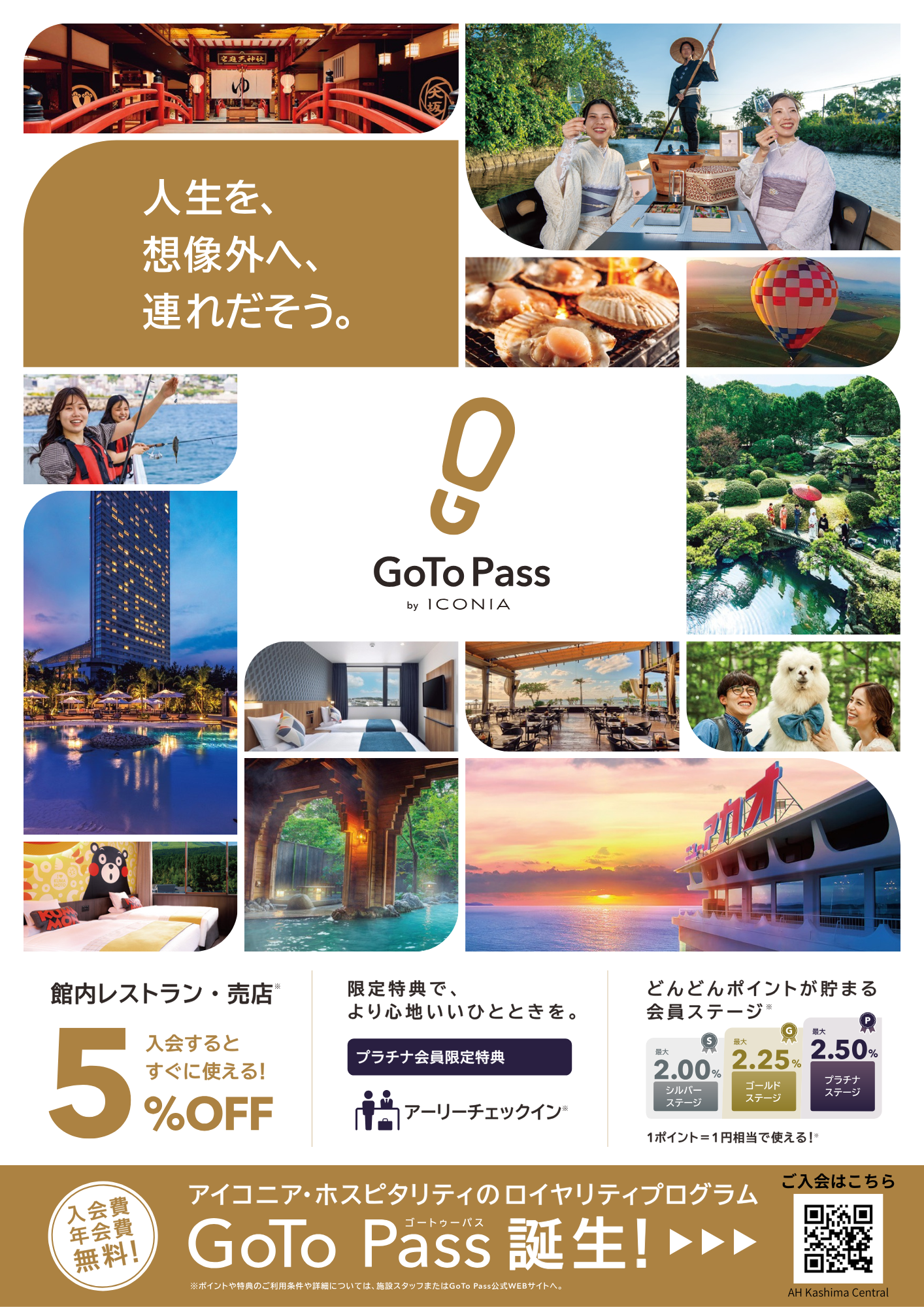 全国のアイコニア・ホスピタリティ・グループ各施設でご利用可能な会員プログラムで、対象施設のご宿泊、レストランでのお食事、売店でのお買い物がいつでもお得に。旅をもっと自由に、もっとおトクに楽しめるプログラムです。