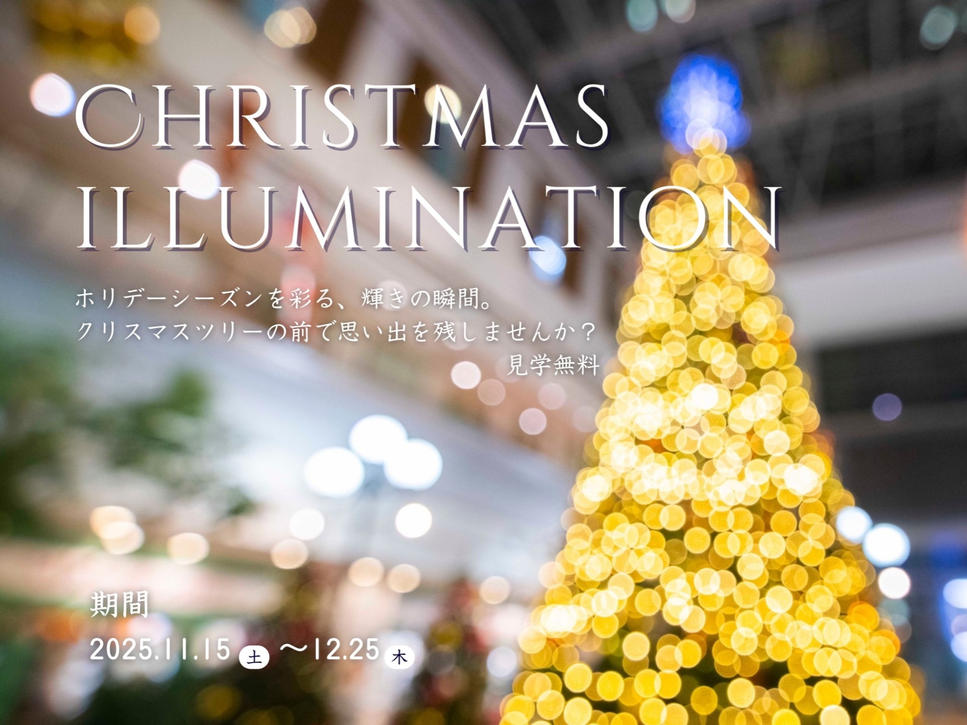 鹿島セントラルモール冬の風物詩「全長約8mのシンボルツリー」が今年も皆さまをお出迎えいたします。シャンパンゴールド色のLED約1万灯でライトアップしたクリスマスツリーを背景に、ぜひご来館の記念に写真撮影などお楽しみください。